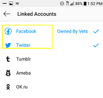 Step 07 – In the Linked Accounts Screen You Can Link Your Other Social Media Accounts to your Instagram Account by Following the Prompts With your Login Credentials.