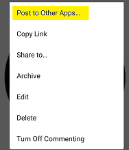 Step 02 – In the Pop-Up Screen Select “Post to Other Apps…”
